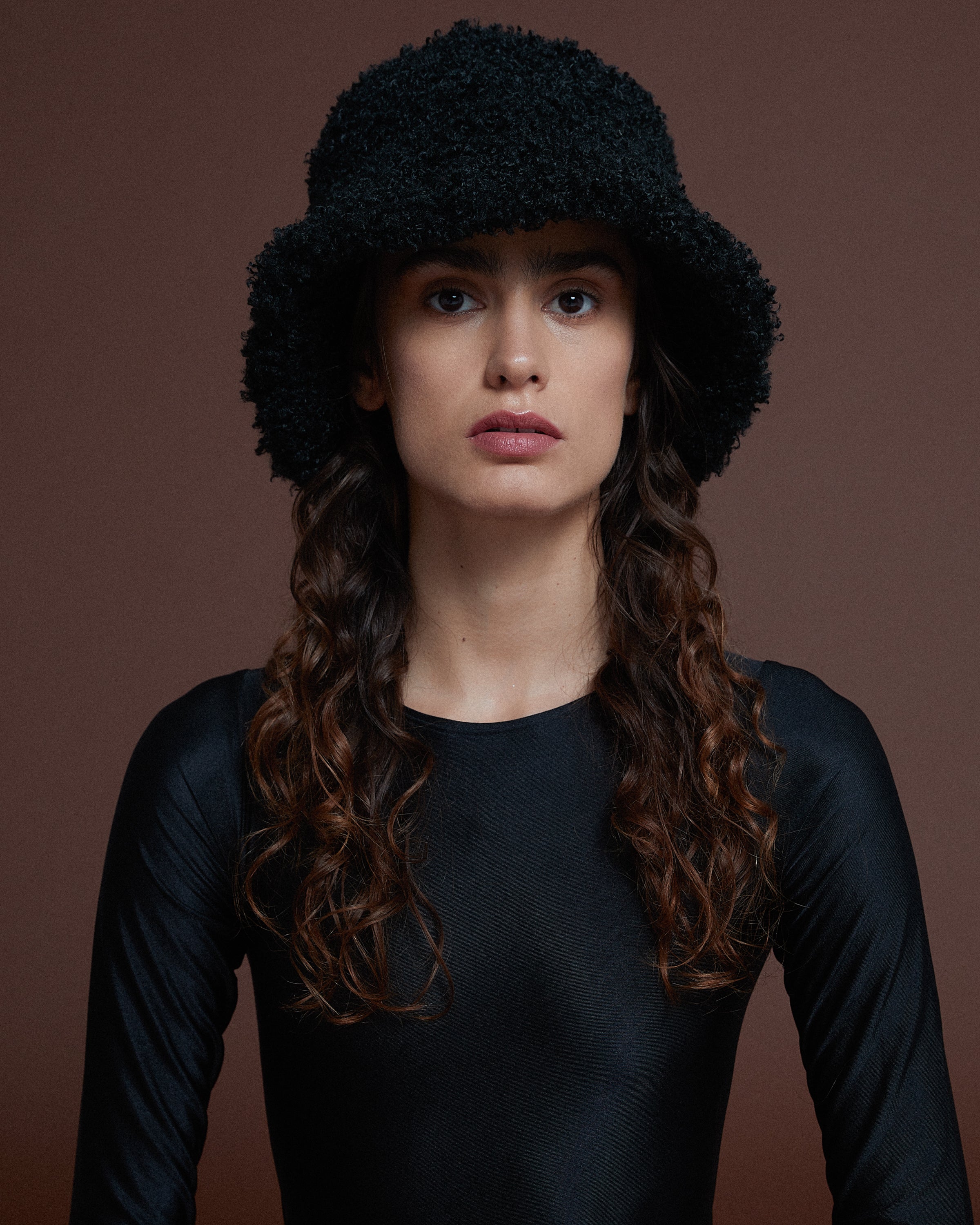Hand-crocheted upon order in Barcelona, high and fluffy hat in black color. Made with top-grade exclusive synthetic fabric that guarantees both softness and warmness.