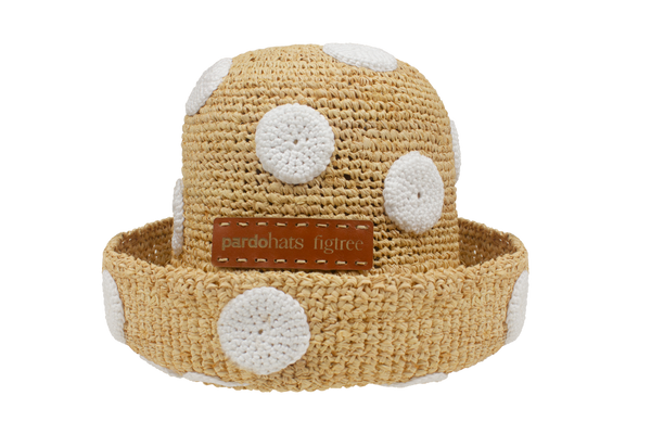 Handmade upon order in Barcelona, the Teresa is a stunning handwoven raffia hat that showcases intricate crochet circles made with 100% cotton thread. This unique piece is a proud collaboration with Figtree Collections, blending artistry and craftsmanship into a comfortable accessory.