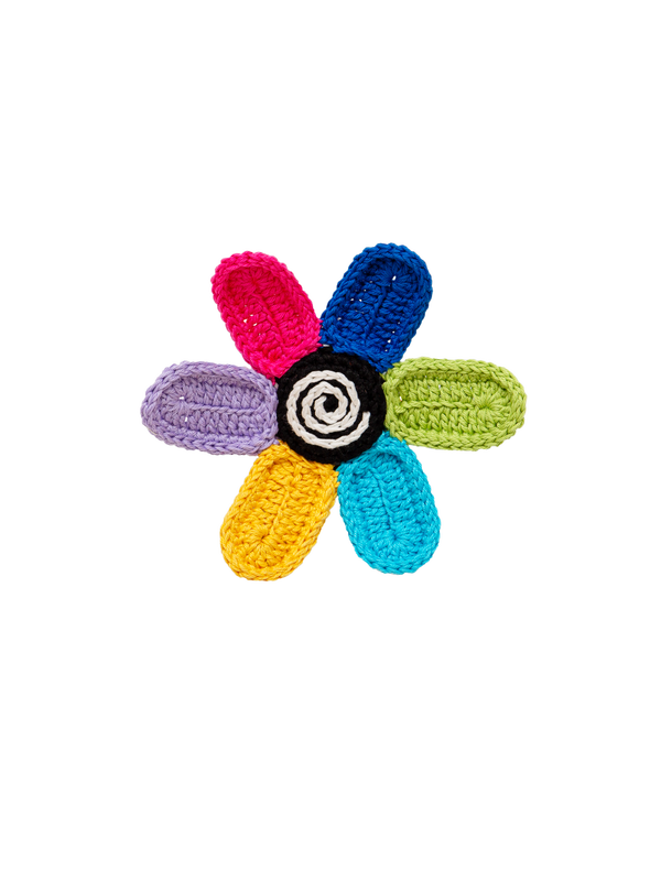 Handmade upon order in Barcelona, the Wakatobi is a beautifully crafted crochet hair tie featuring a vibrant XL multicolor floral design that adds a touch of elegance to any hairstyle.